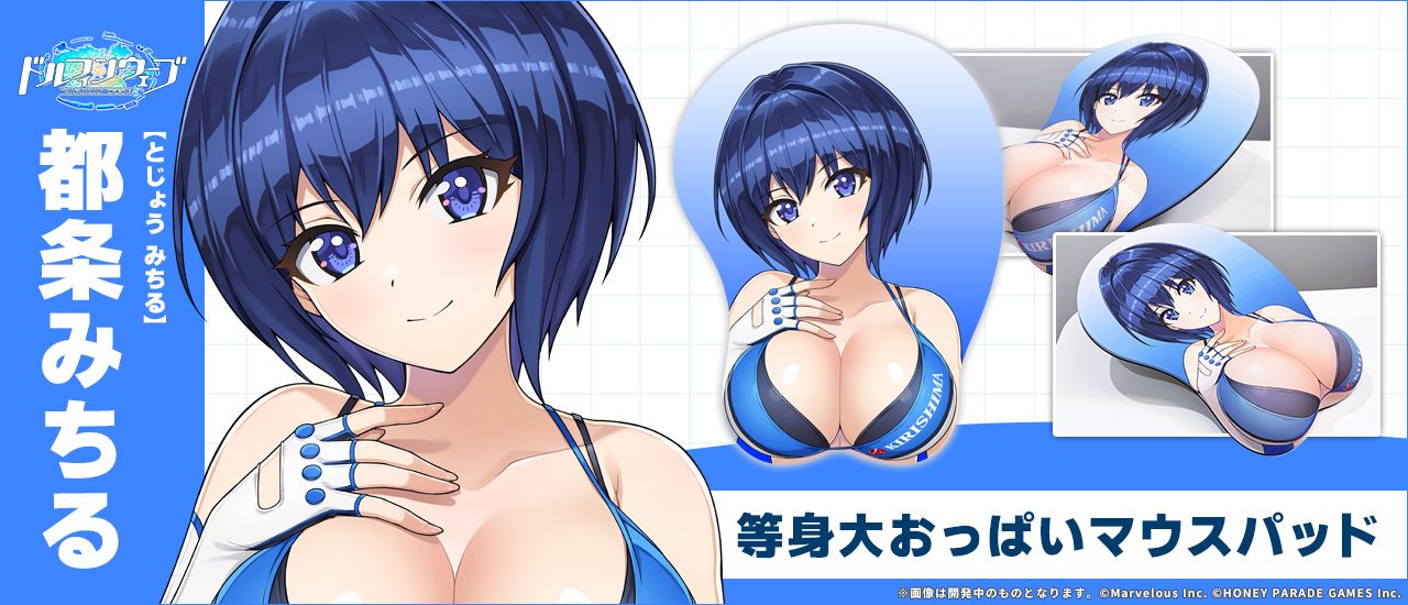 HONEY∞PARADE GAMESが配信する爽快ジェットバトル『ドルフィンウェーブ』(ドルウェブ)より、「ドルフィン」たちの等身大おっぱいマウスパッドが登場!