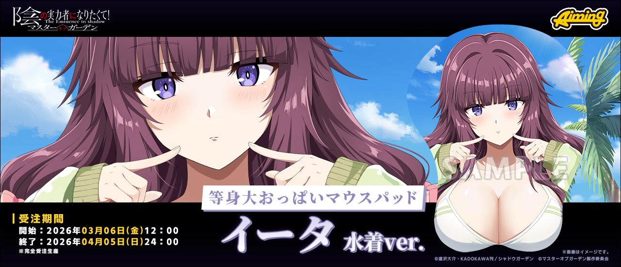 3DアニメーションRPG『陰の実力者になりたくて!マスターオブガーデン』(カゲマス)より、シャドウガーデンを束ねる「七陰」の等身大おっぱいマウスパッド 水着ver.が登場!